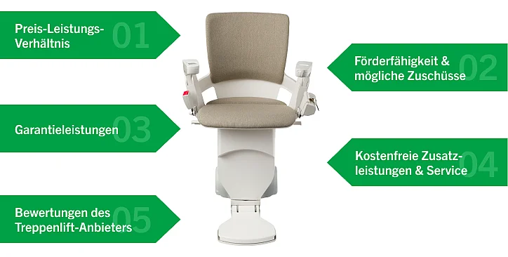 Beim Vergleich der wichtigsten Merkmale verschiedener Treppenlift-Anbieter finden wir das beste Angebot für Sie.